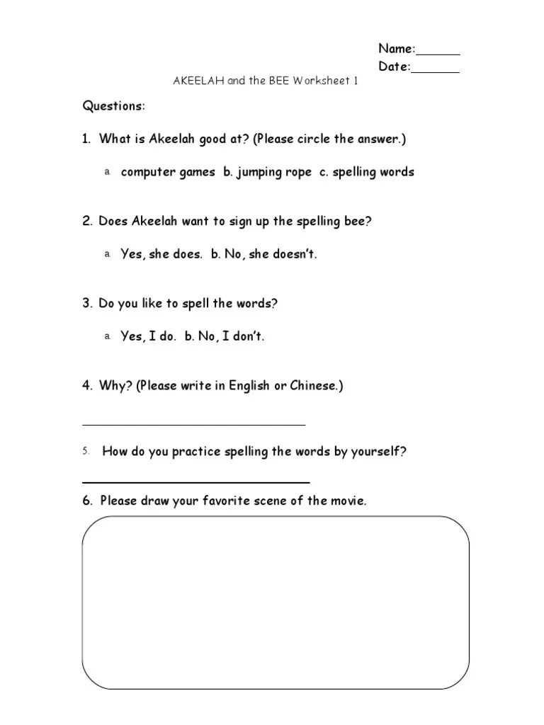 Akeelah And The Bee Worksheet / Akeelah And The Bee Introduction Vocabulary English Esl Worksheets For Distance Learning And Physical Classrooms -. It can be difficult to predict what type of reaction one will have to a sting. 'bee movie' is written, produced and stars comedian jerry seinfeld. Take an inside look at 'bee movie' and learn about the creation of 'bee movie.' advertisement by: Please be sure that your entry into the contest contains original photos and text. Wilson scientists suspect that bees and flowerin.